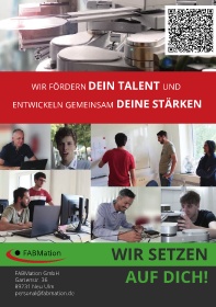 WIR FÖRDERN DEIN TALENT UND ENTWICKELN GEMEINSAM DEINE STÄRKEN WIR SETZEN FABMation FABMation GmbH AUF DICH! Gartenstr. 36 89231 Neu-Ulm personal@fabmation.de