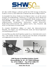 Mit über 5.000 Anlagen weltweit gehört die SHW Storage & Handling